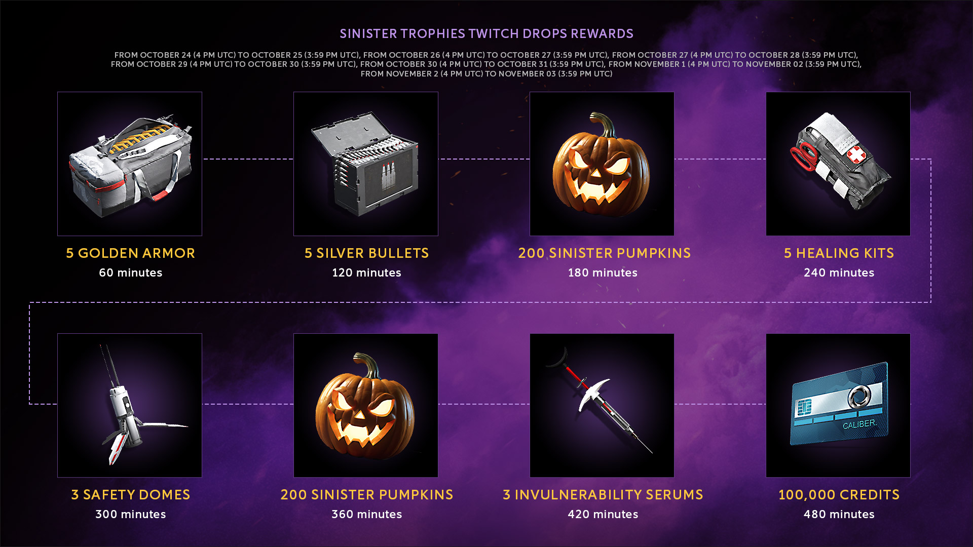 From October 24 to November 4, a new Sinister Trophies Twitch Drops season will take place in Caliber. Watch livestreams and collect valuable rewards to become more effective against servants of evil!