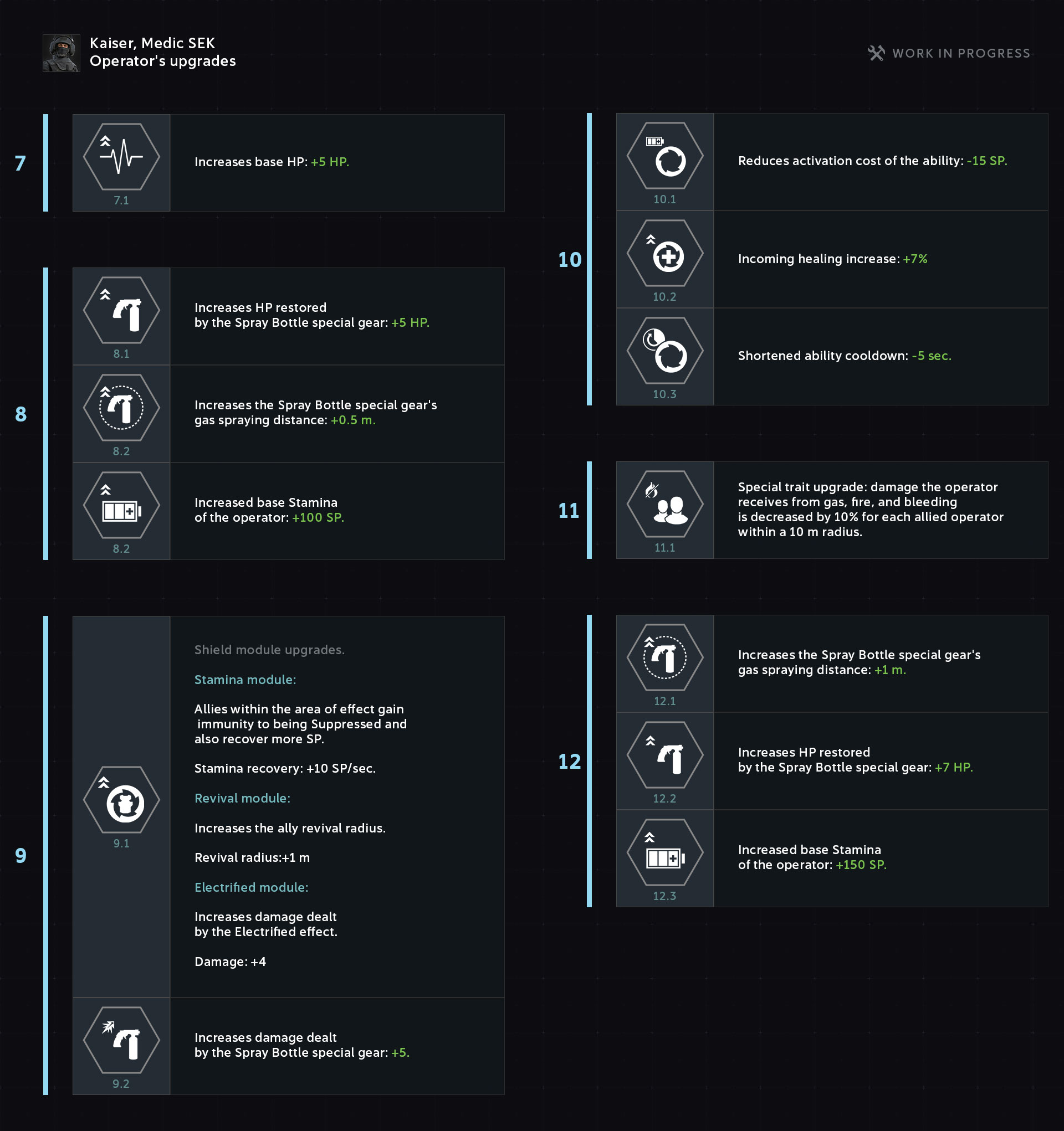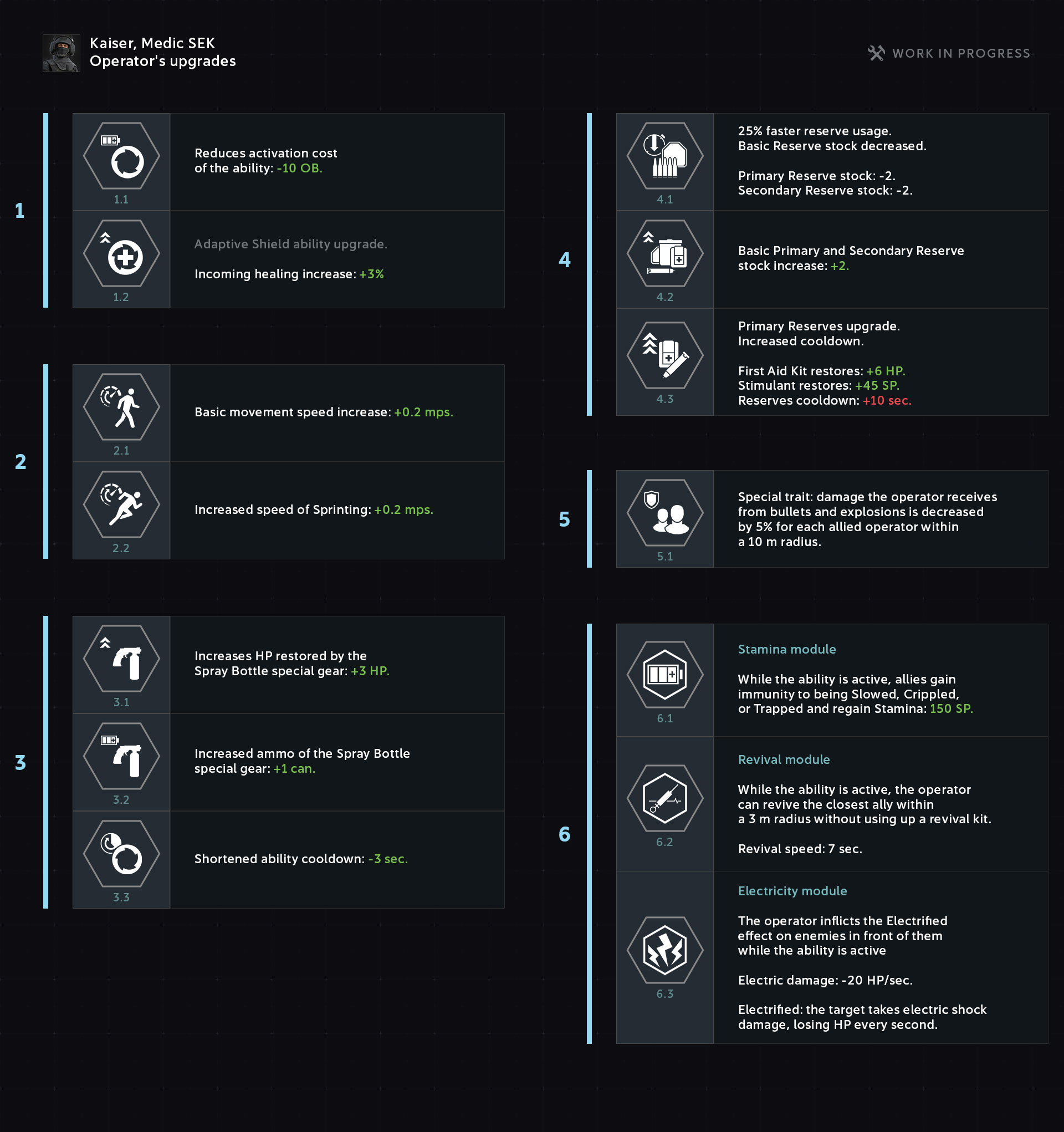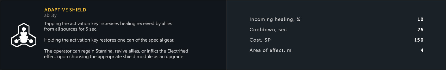The module allows for reviving the closest teammate in the ability’s area of effect without having to use a revival kit. Revival duration is 7 seconds.
