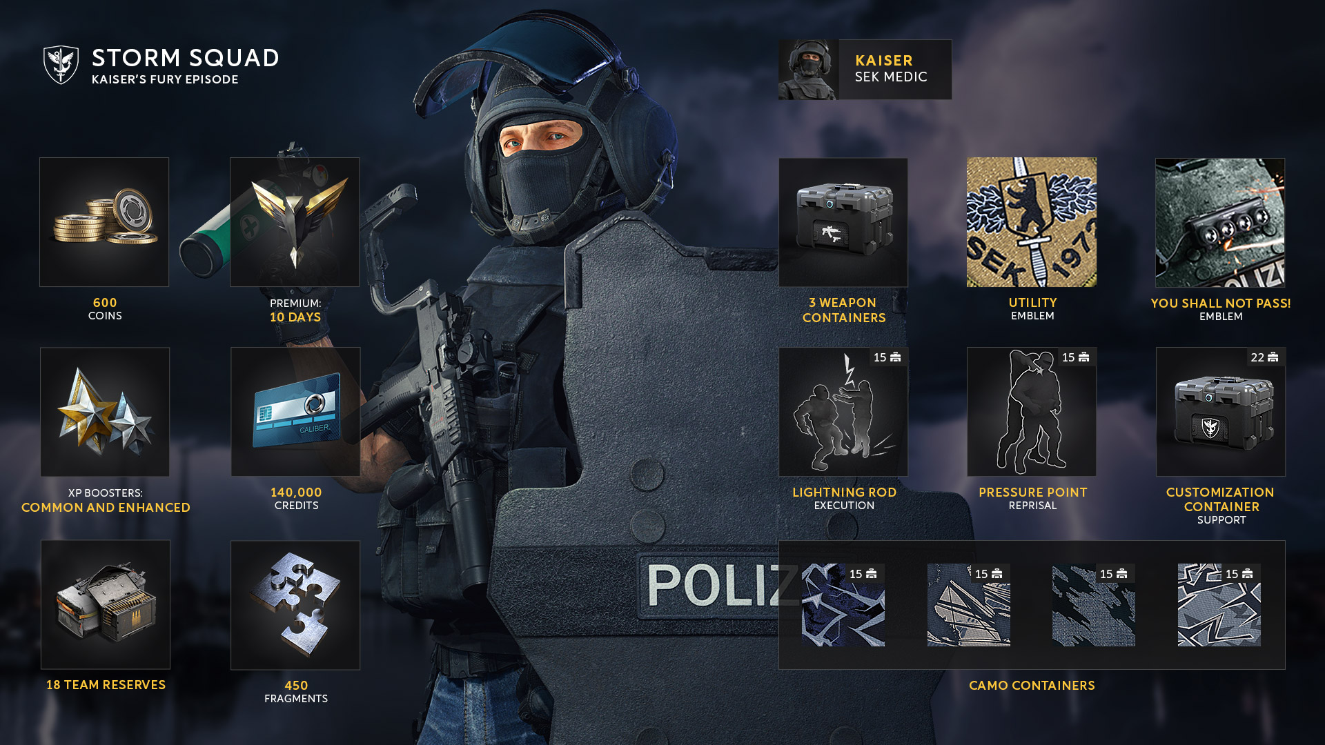 On November 19, Kaiser’s Fury, the final episode of the Storm Squad Battle Pass, will be released in Caliber. It features Kaiser, a unique operator who is the first Medic with a shield.