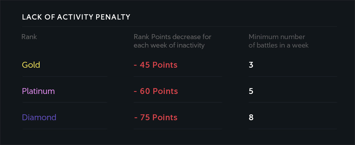 The higher the League, the more battles you have to play, and the more Rank Points players will lose for inactivity.