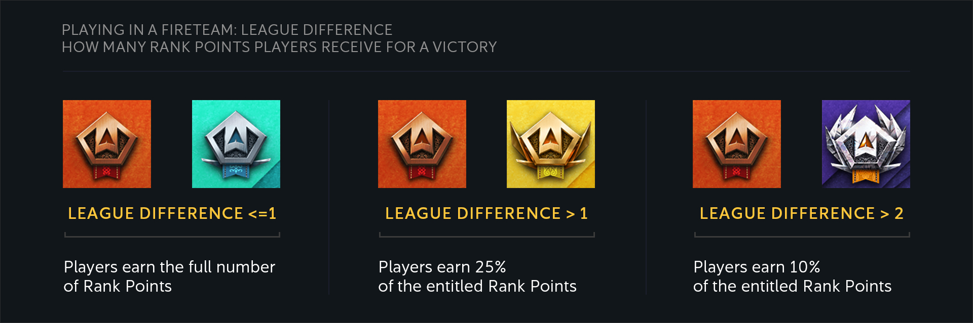 If you play in a fireteam that contains players from different Leagues, the matchmaking of the opposing team will be carried out based on your team’s top-ranking players. However, a victory with such a fireteam will earn fewer Rank Points.