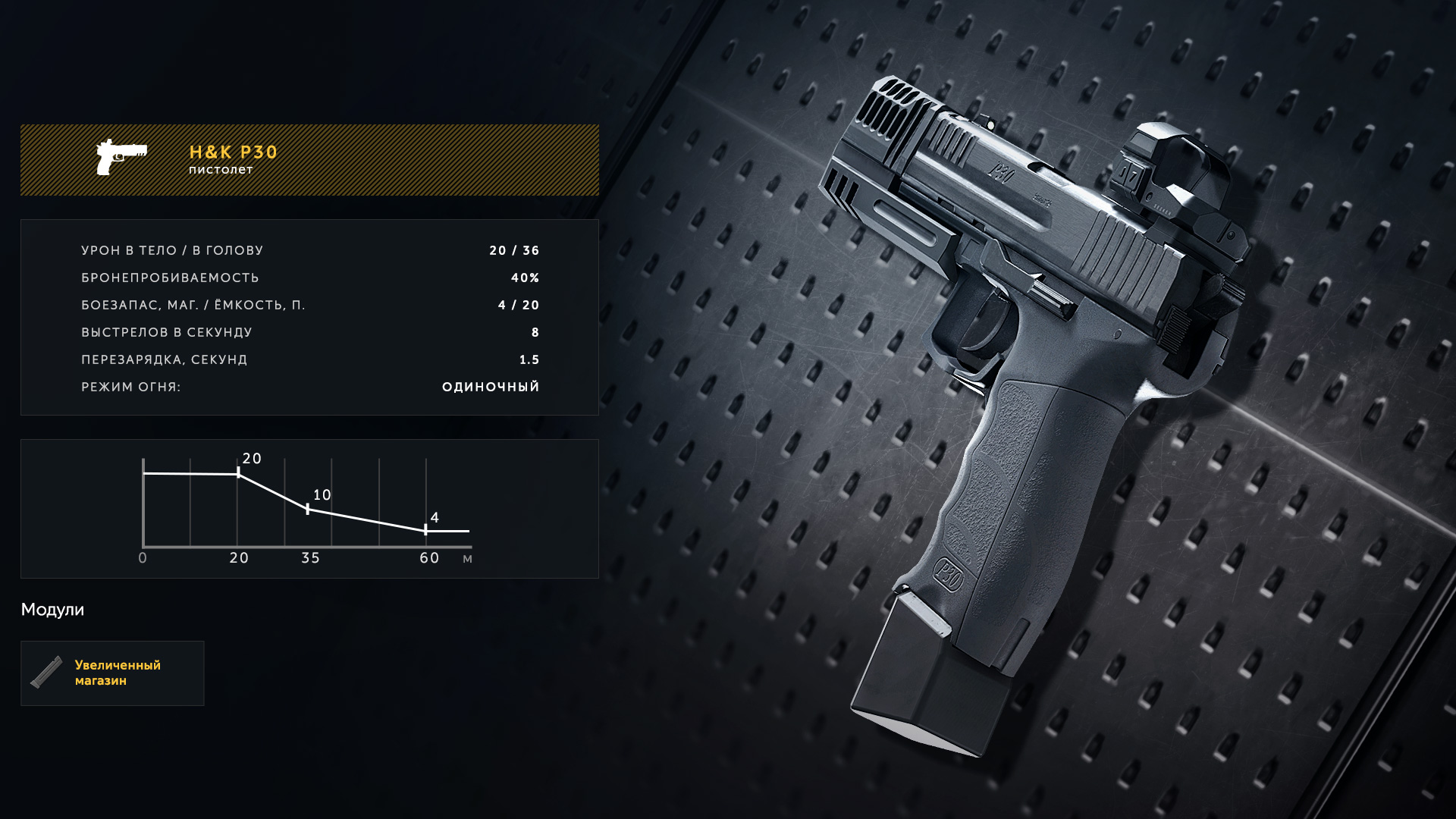 Дополнительное оружие — HK P30. Тот же пистолет, что и у штурмовика Фауста: надёжное «оружие последнего шанса» с высоким уроном по телу и в голову. Оружие оснащено коллиматорным прицелом для удобной стрельбы.