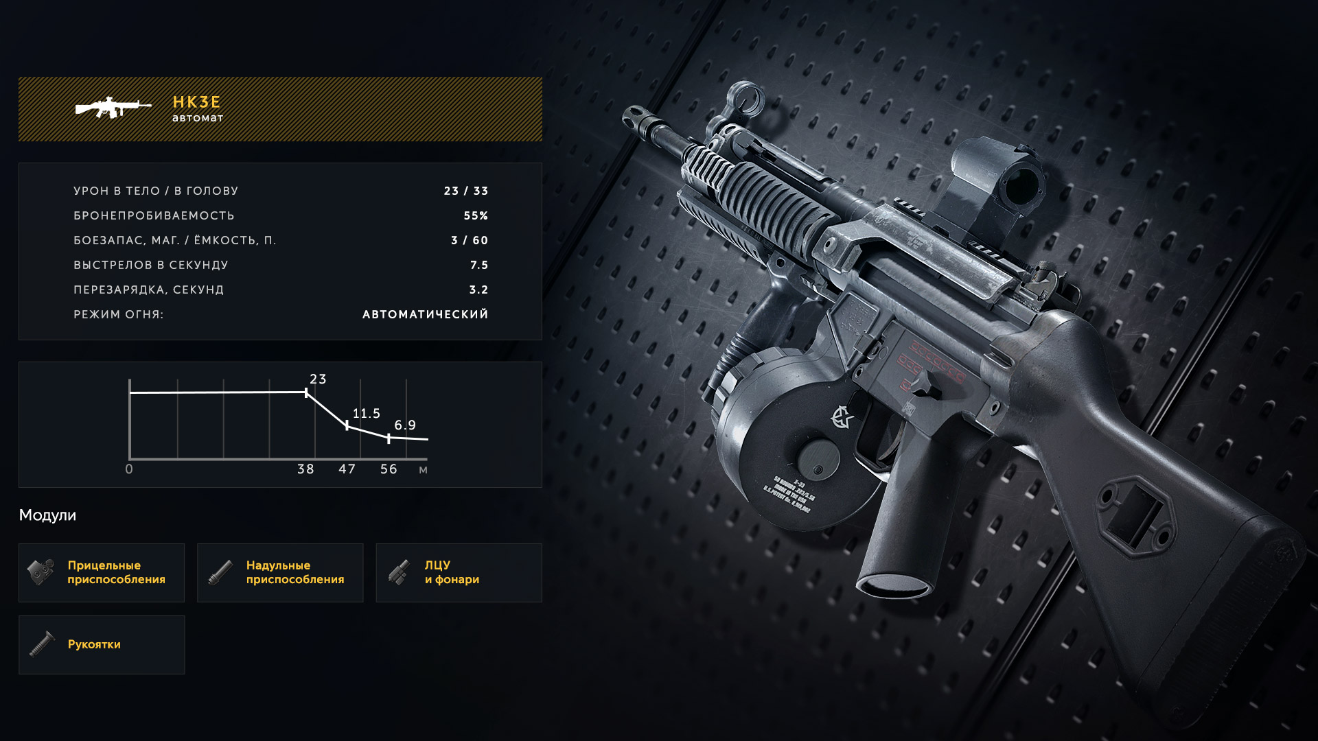 Она оснащена вертикальной рукоятью для комфортного ведения огня на средней дистанции, а также ЛЦУ, уменьшающим разброс.