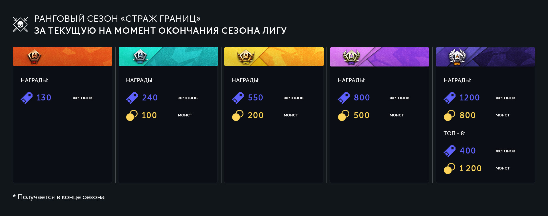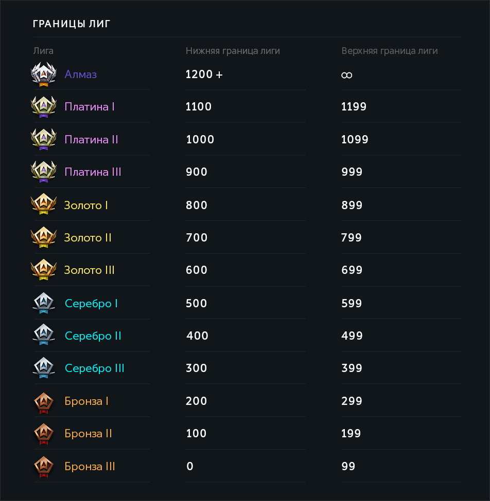 Стартовая лига определяется по результатам калибровки — это первые пять боёв в начале сезона. Дальнейшее продвижение зависит от ваших успехов: победа приносит очки ранга, поражение отнимает.