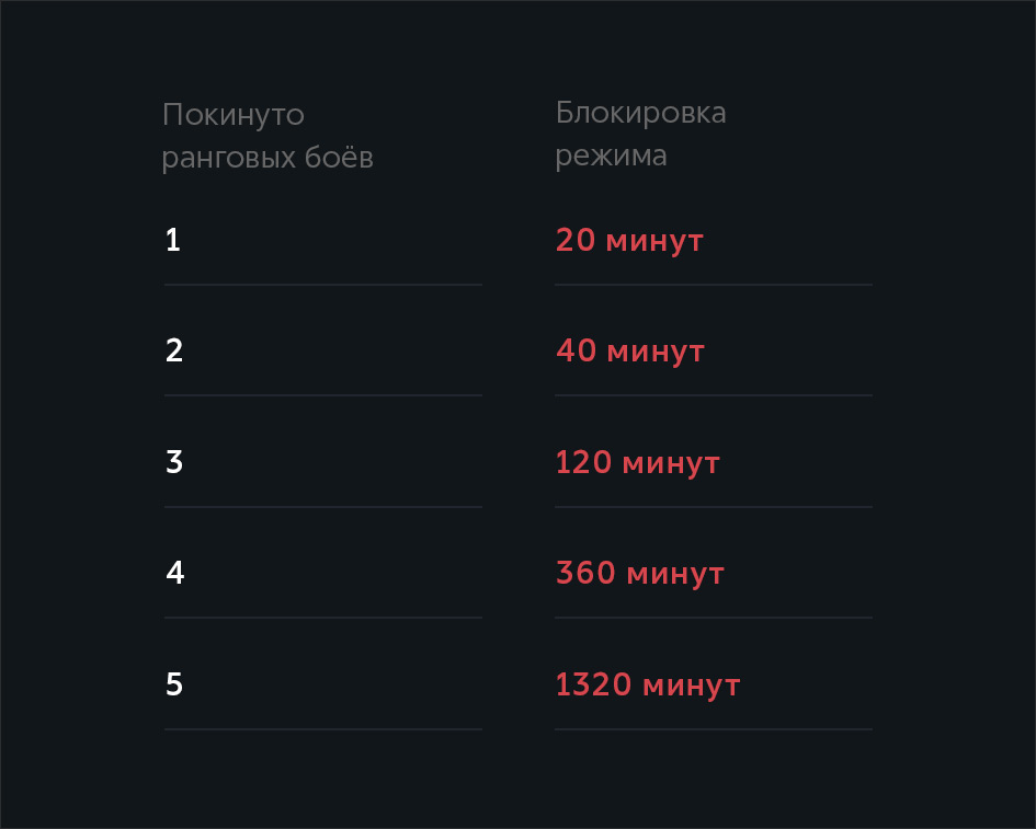 В ранговых боях действуют строгие наказания за преждевременный выход:
